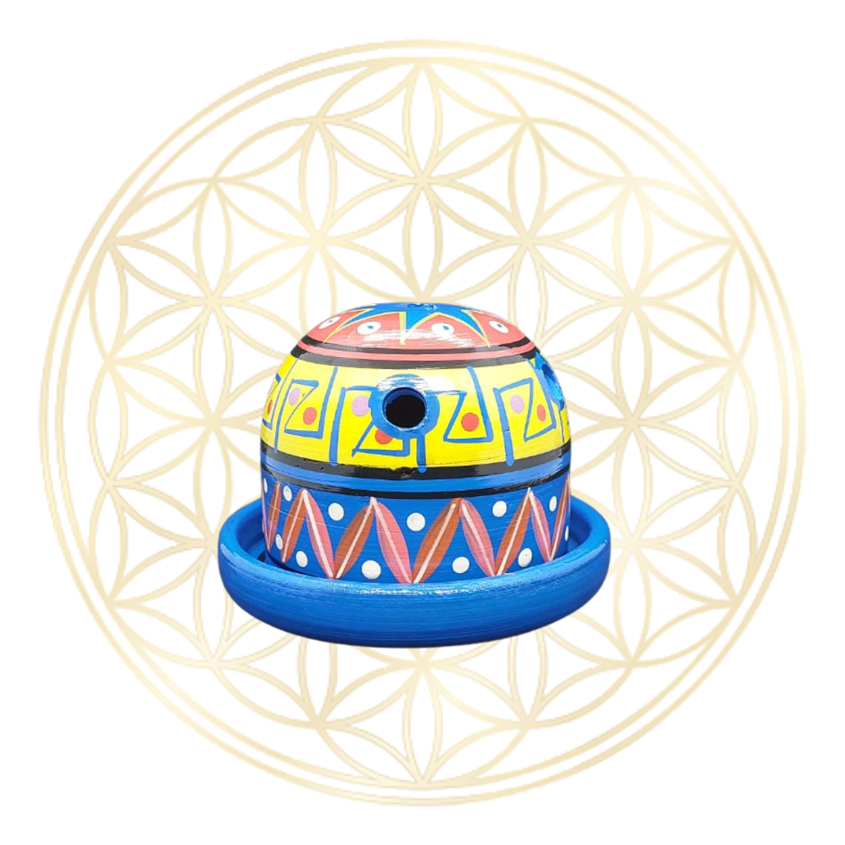 OBS.: As cores disponíveis para compra refere-se a base/pratinho, já as cores e desenhos da parte superior do incensário poderá ser diferentes com as imagens do anúncio, pois é um produto artesanal.