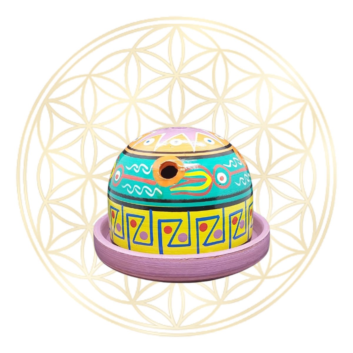 OBS.: As cores disponíveis para compra refere-se a base/pratinho, já as cores e desenhos da parte superior do incensário poderá ser diferentes com as imagens do anúncio, pois é um produto artesanal.