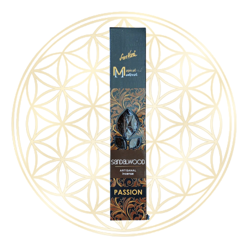 O incenso de Sândalo inspira paixão promovendo um ambiente sereno. Seu aroma calmante limpa a mente permitindo uma mentalidade focada para explorar e nutrir desejos pessoais, está influência tranquila apoia a motivação e a dedicação a atividades fervorosas, potencializando a manifestação da paixão e do compromisso.